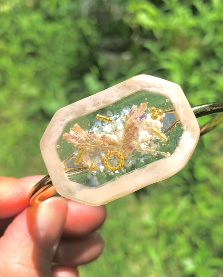 *わずかなワイヤーのゆがみ、レジンの中の気泡、はみだしなど、完璧ではないことをあらかじめご理解くださいませ。