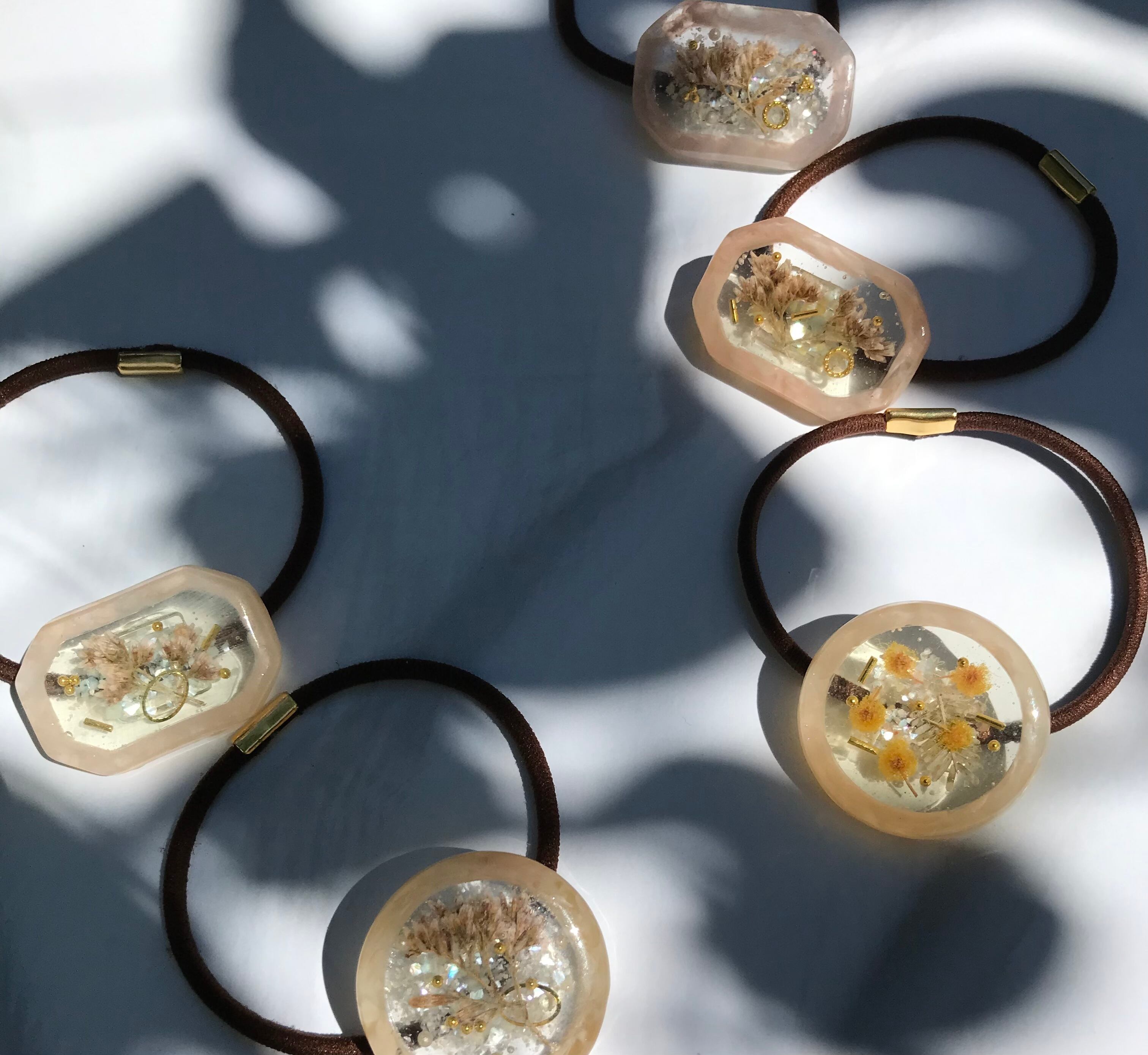 レジンのデザインパーツをひとつひとつ手作りしています。そのため同じデザインを作ったとしても、色や形がわずかに異なります。すべての作品はほぼ一点ものであることをご理解くださいませ。