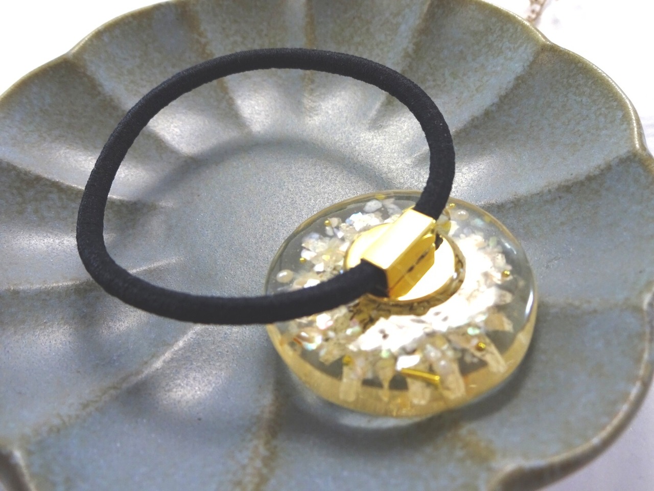 あの日のように、心がパッと明るくなるキラキラヘアゴムを作りました。