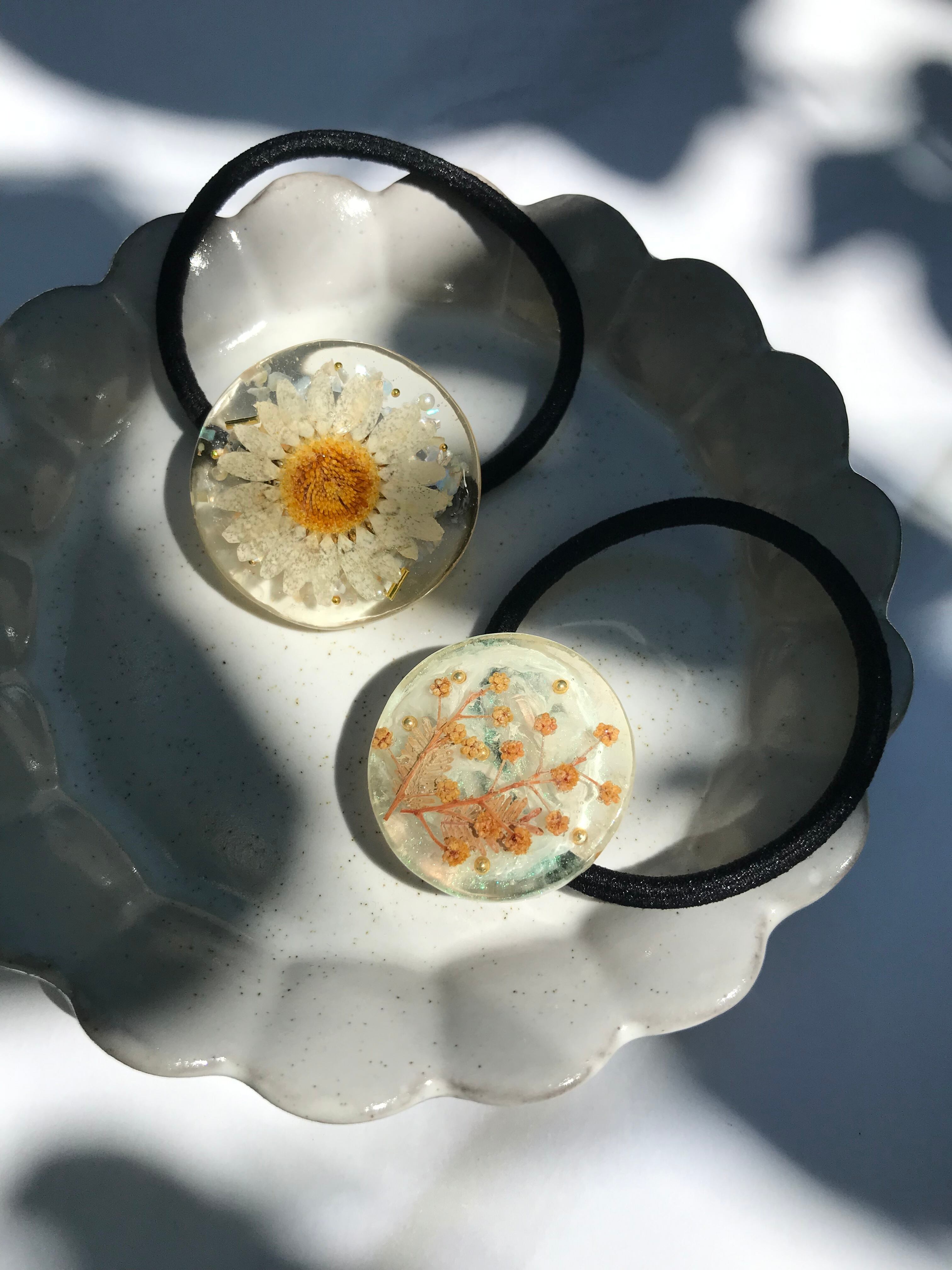 レジンのデザインパーツをひとつひとつ手作りしています。そのため同じデザインを作ったとしても、色や形がわずかに異なります。すべての作品はほぼ一点ものであることをご理解くださいませ。
