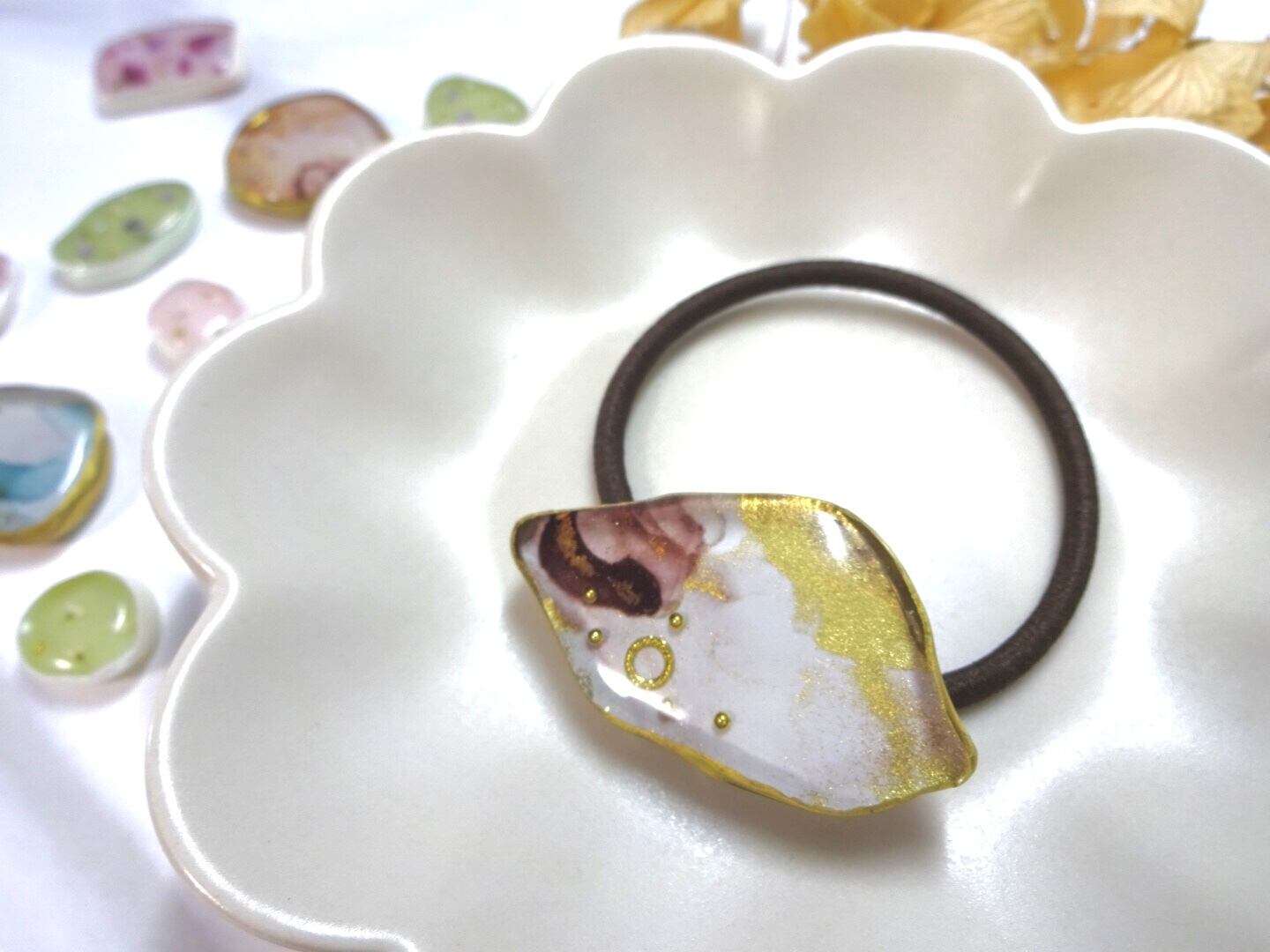 レジンのデザインパーツをひとつひとつ手作りしています。そのため同じデザインを作ったとしても、色や形がわずかに異なります。すべての作品はほぼ一点ものであることをご理解くださいませ。