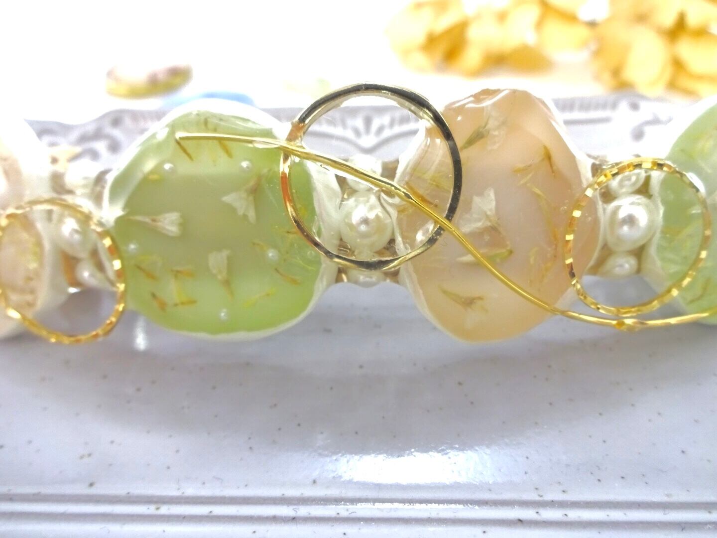 *わずかなワイヤーのゆがみ、レジンの中の気泡、はみだしなど、完璧ではないことをあらかじめご理解くださいませ。