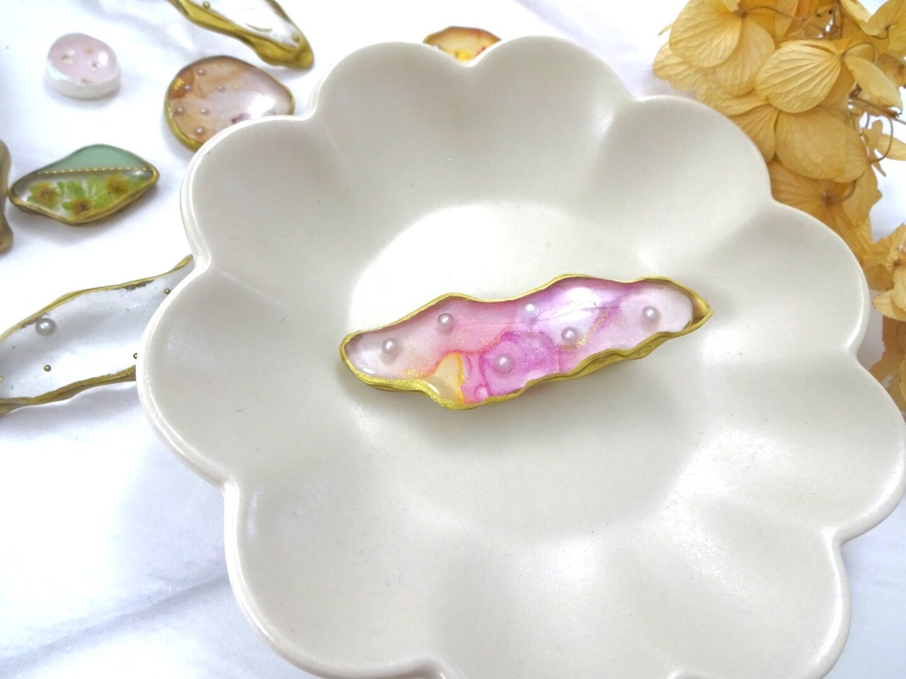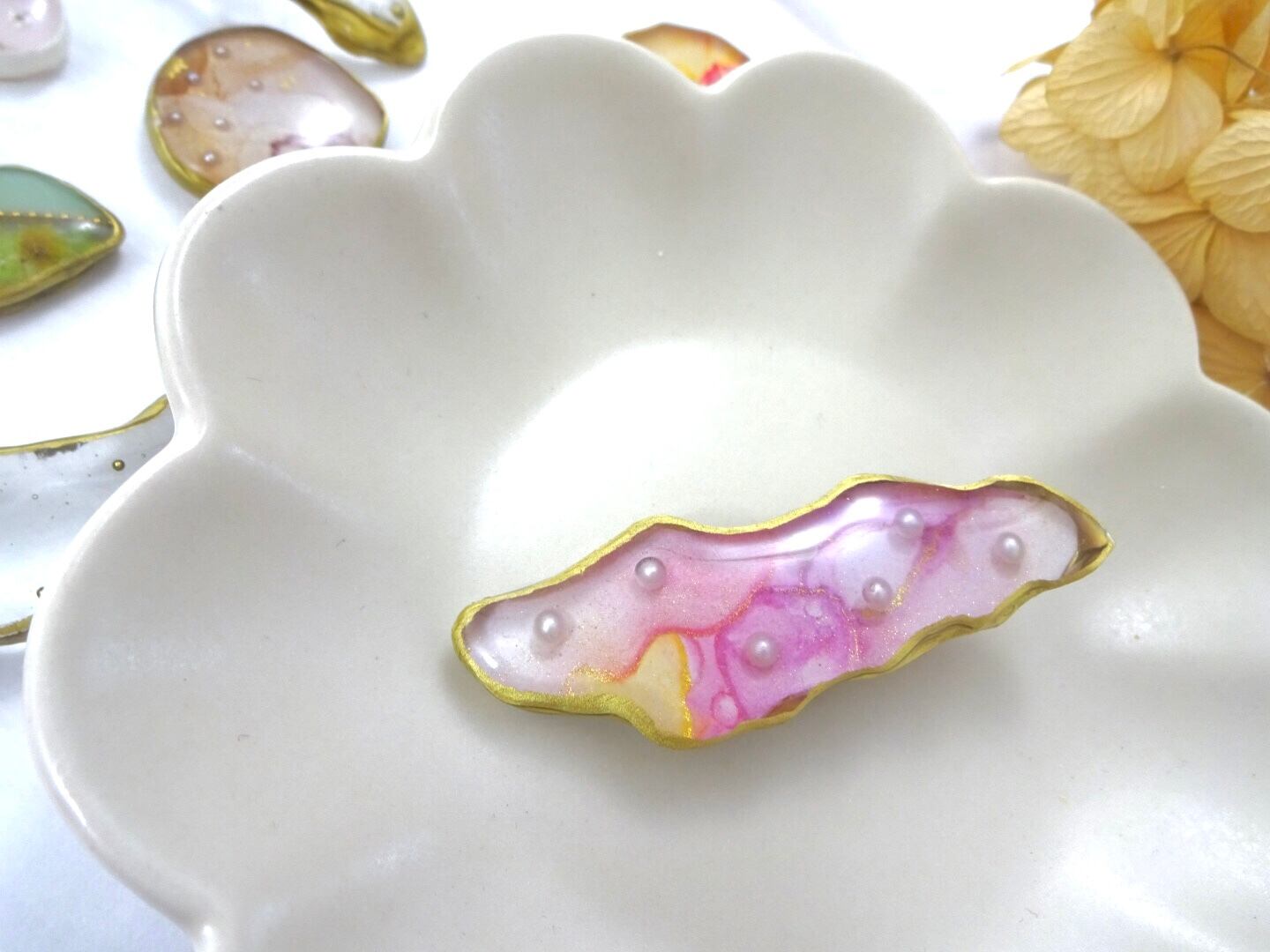 レジンのデザインパーツをひとつひとつ手作りしています。そのため同じデザインを作ったとしても、色や形がわずかに異なります。すべての作品はほぼ一点ものであることをご理解くださいませ。