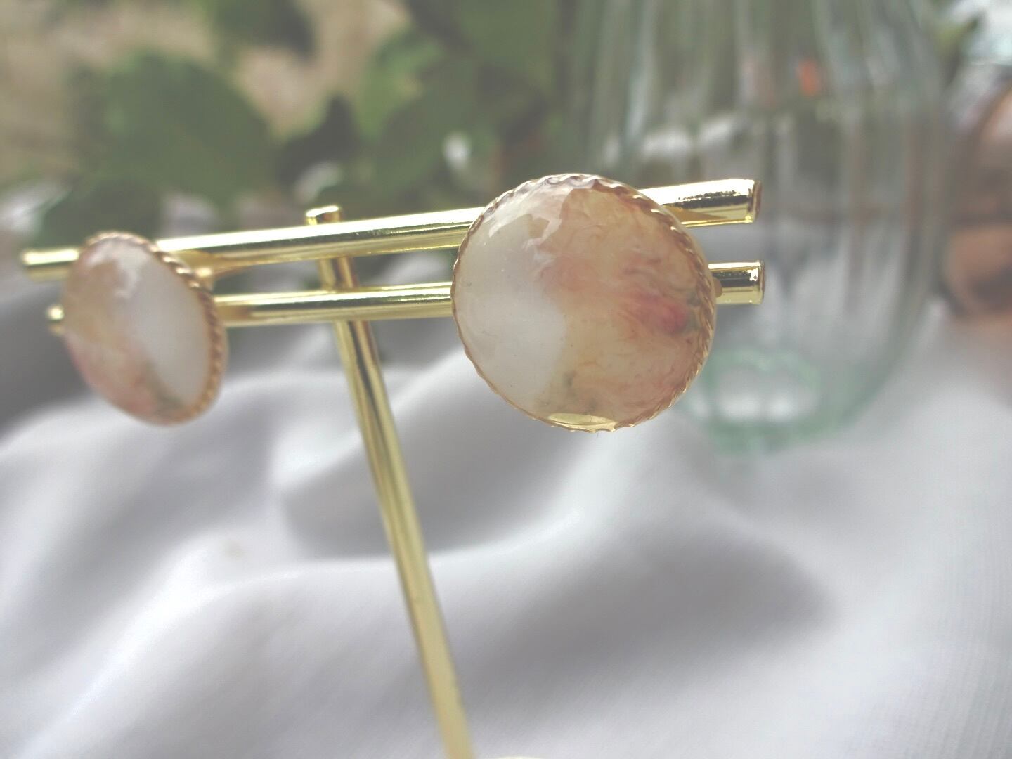 レジンのデザインパーツをひとつひとつ手作りしています。そのため同じデザインを作ったとしても、色や形がわずかに異なります。すべての作品はほぼ一点ものであることをご理解くださいませ。