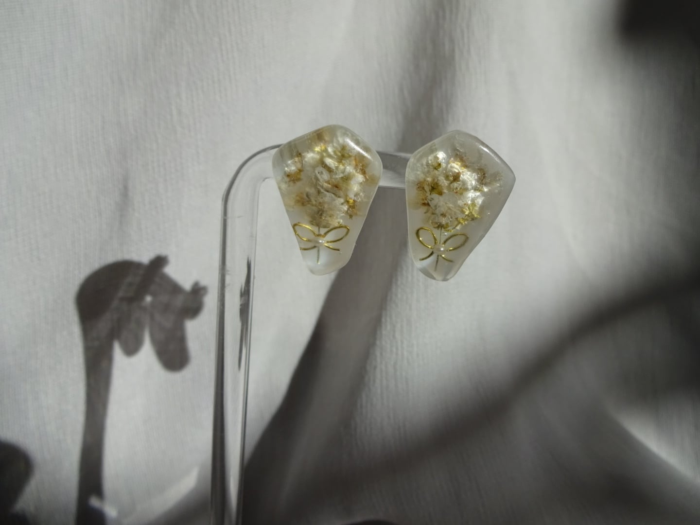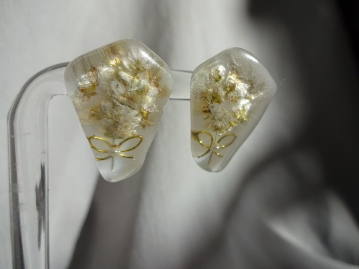レジンのデザインパーツをひとつひとつ手作りしています。そのため同じデザインを作ったとしても、色や形がわずかに異なります。すべての作品はほぼ一点ものであることをご理解くださいませ。