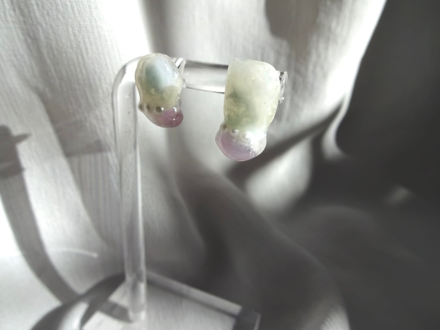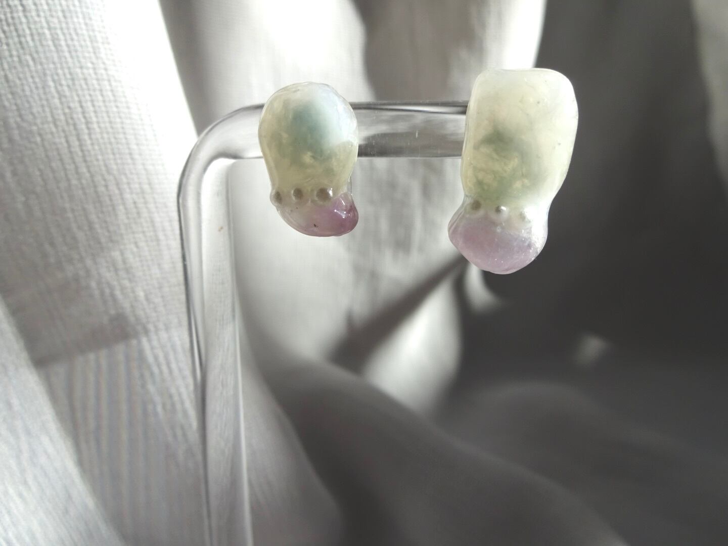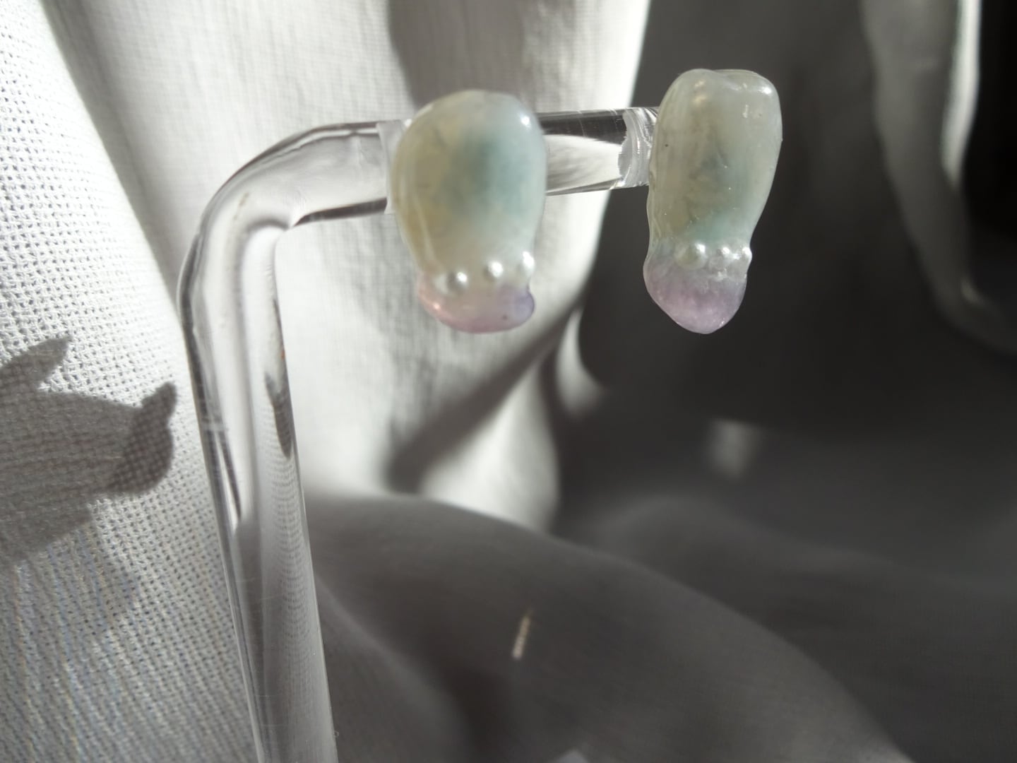レジンのデザインパーツをひとつひとつ手作りしています。そのため同じデザインを作ったとしても、色や形がわずかに異なります。すべての作品はほぼ一点ものであることをご理解くださいませ。
