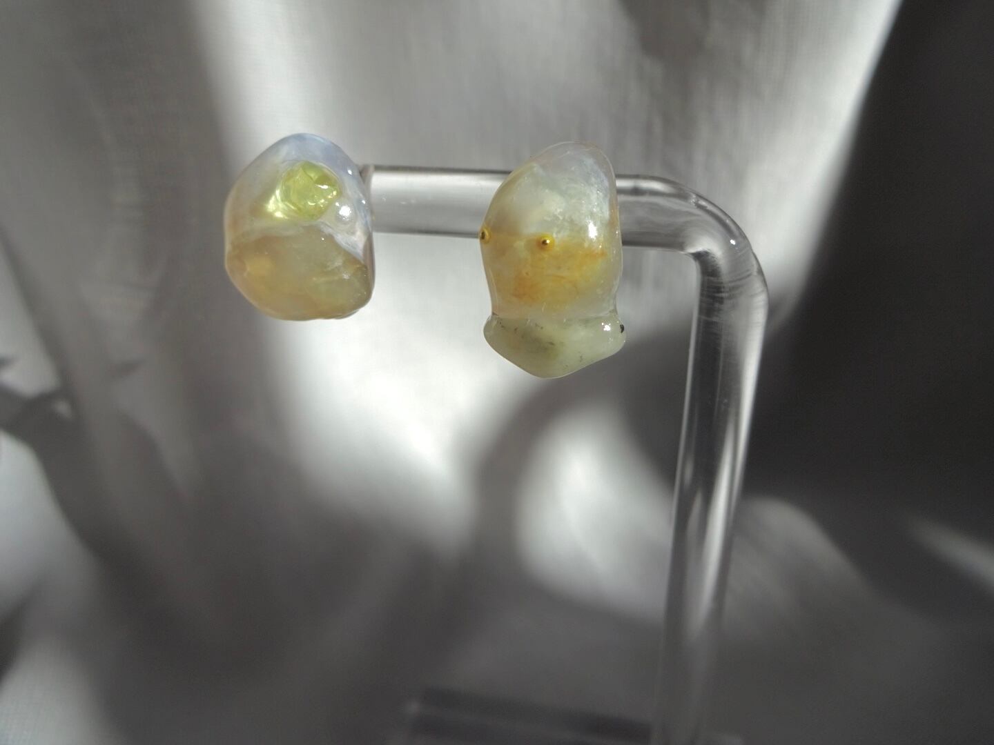 レジンのデザインパーツをひとつひとつ手作りしています。そのため同じデザインを作ったとしても、色や形がわずかに異なります。すべての作品はほぼ一点ものであることをご理解くださいませ。